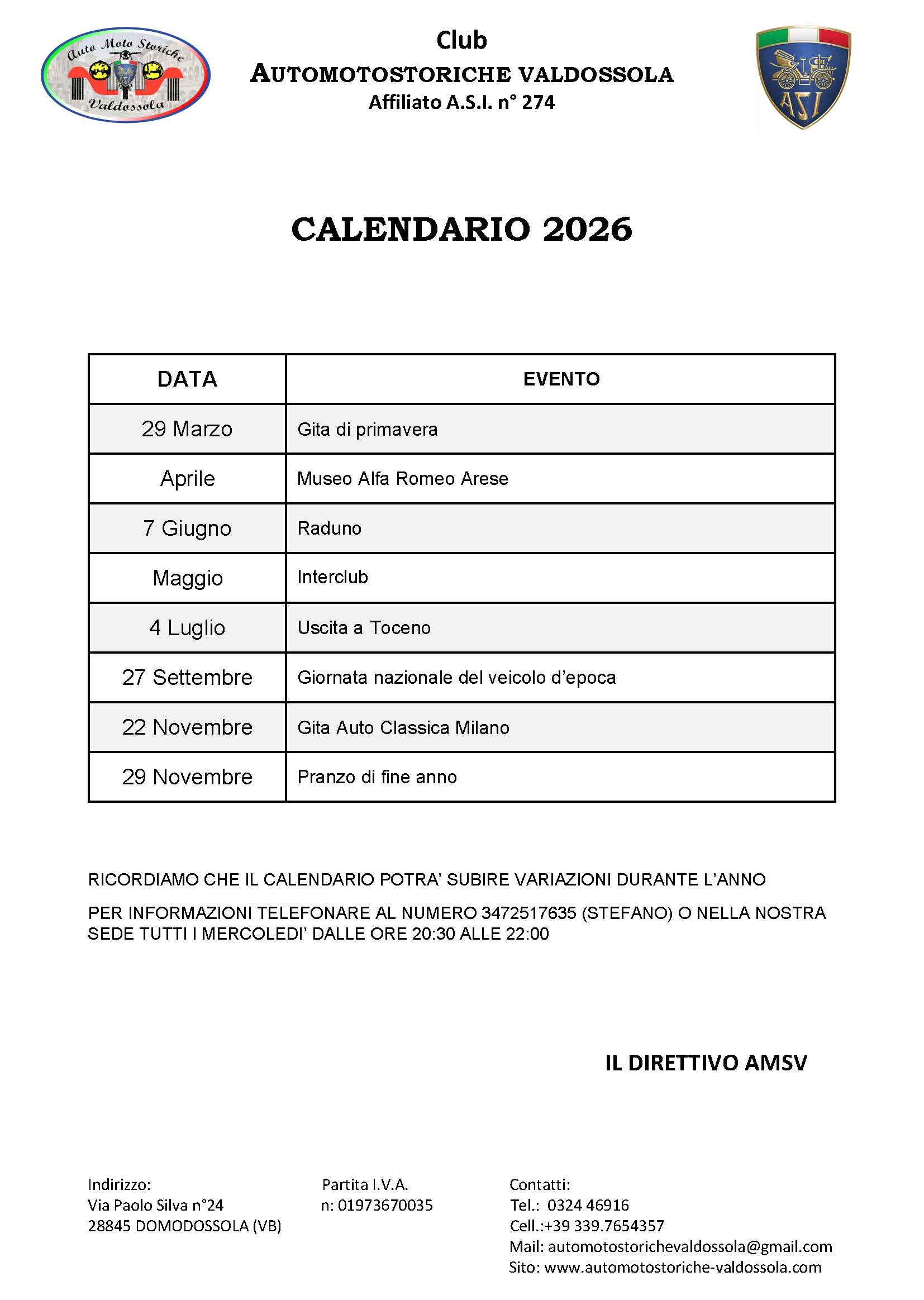 si ricorda che sia la tessera del CLUB,che ASI, a prescindere dalla data di rinnovo o nuova iscrizione,